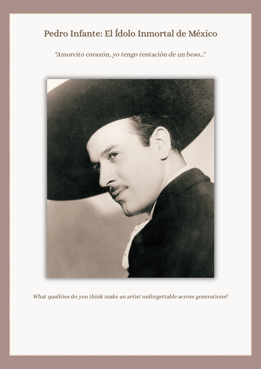 Bring the charisma, artistry, and cultural pride of Pedro Infante, Jorge Negrete, and Javier Solís into your classroom with this beautifully designed, ready-to-use resource.